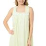 Короткая ночная сорочка свободного кроя из трикотажного полотна, лиф на широких бретелях декорирован кружевом, на груди застежка на пуговицах.