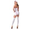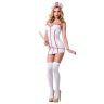 Костюм медсестры выполнен из полиэстера и эластана. В комплект входит платье и повязка на голову. Перед платья оформлен застежкой-молнией. Бюст дополнен косточками. У изделия тонкие эластичные лямки. Чулки и стетоскоп в комплект НЕ входят. Костюм упакован в красивую подарочную коробку.