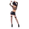 Костюм выполнен из полиэстера и эластана. В комплект входит лиф, сетчатый жакет, мини-юбка с прозрачными вставками по боками, наручники. Фуражка в комплект НЕ входит. Костюм упакован в красивую подарочную коробку.