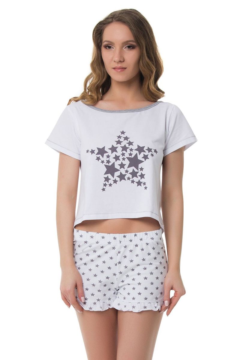 Белая футболка с принтом и белые шорты со звездами Stars 1221