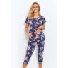 Синяя женская пижама Ellie с цветочным принтом. Футболка с коротким рукавом и круглым вырезом горла. Бриджи с мягкой резинкой в поясе и удобными боковыми карманами, по ширине регулируются внутренним шнурком. Идеально подходит для сна и в качестве домашнего костюма.