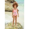 Коралловый купальник с объемными 3D деталями, для девочек. Лямки завязываются на плечах.
