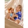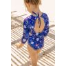 Синий купальник с длинными рукавами, оборками и завязкой на спине, для девочек. Материал с защитой от УФ-излучения.