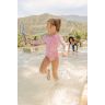 Розовый купальник с длинными рукавами, оборками и завязкой на спине, для девочек. Материал с защитой от УФ-излучения.