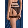 Черный пояс Miranda c имитацией подвязок выполнен из эластичных ремешков-резиночек. Длина ремешков регулируется.