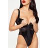 Сексуальный лаковый костюм Зайка выполнен в чёрном цвете и состоит из контактного комбидресса с молнией и головного убора. Боди украшено кружевными вставками по бокам и белым пушистым хвостиком сзади. Костюм упакован в потрясающую подарочную упаковку, с игривым перышком внутри.