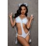 Костюм белой кошечки включает в себя боди, наручники и ушки. Костюм упакован в потрясающую подарочную упаковку, с игривым перышком внутри.