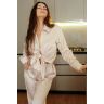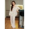 Комфортный и элегантный комплект, состоящий из брюк и рубашки, выполнен из армани шелка. Широкие струящиеся брюки в пол подчеркнут бедра и сделают ножки бесконечно длинными, а рубашка с красивыми манжетами и интересной потайной планкой для пуговиц, станет дополнением к ним. Универсальный комплект можно одевать в паре или носить по отдельности. Он станет прекрасным образом как для дома, так и для прогулок и свиданий.