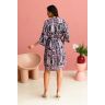 Платье - рубашка, прямое, длинное на поясе, из принтованной вискозы. Напоминает классическую мужскую рубашку. Отложной воротник со стойкой и застежкой планкой на пуговицах. Рукав прямой, 7/8, с застежкой платой. Заниженная линяя плеча, спущенный рукав, рубашечного кроя. Спинка с кокеткой и встречной складкой. Разрезы по боковым швам