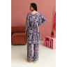 Комплект из удлиненной туники и брюк, выполнен из принтованной вискозы. Туника свободного силуэта. Полочка с застежкой планкой на пуговицах. Спинка оформлена фигурной кокеткой, с вытачками и встречной складкой. Горловина обработана обтачкой. Разрезы в боковых швах. Рукав рубашечный с манжетой на пуговице. Брюки с карманами, свободного силуэта. Пояс на эластичной ленте.