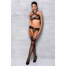 Черный комплект нижнего белья Amanda состоит из трех предметов: бюст, трусики стринги и пояс для чулок. Выполнен в эффектном сочетании полупрозрачной сеточки и эластичного материала имитирующего кожу. Декоративные кольца придают модели пикантной изюминки. Бюст мягкий, оригинальные бретели сзади регулируются по длине, на спине застежка на крючки-петли. Трусики стринги низкой сексуальной посадки. Пояс для чулок с несъемными регулируемыми пажами, фиксируется застежкой на крючки. Чулки в комплект не входят.