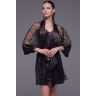 Короткий халат Mia-Amore выполнен из сетки в сочетании с атласными планкой и манжетами. Халат завязывается на широкий атласный пояс.