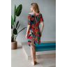 Туника домашняя женская выполнена из эластичной принтованной сетки. Модель приталенного силуэта длиной выше колена. По талии и по плечам изделия кулиска на резинке. Рукав короткий.
