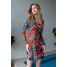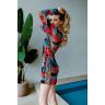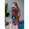 Туника женская выполнена из эластичной сетки с ярким принтом. Модель длиной выше колена с длинным рукавом. Горловина окантована принтованной сеткой. По подолу разрезы в боковых швах. Срезы рукавов и подола обработаны швом "краевка".