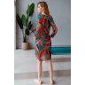 Туника женская выполнена из эластичной сетки с ярким принтом. Модель прямого силуэта средней длинны. Длинный рукав на манжете с резинкой. Спинка на кокетке со складками по центру. В боковых швах туники карманы. Горловина и низ рукавов обработаны обтачкой из эластичной однотонной сетки. Фигурный вырез горловины подчеркнут кантом. Подол туники обработан швом "краевка".