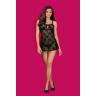 Соблазнительная сорочка Behindy черного цвета выполнена из эластичного кружева. Отрезной мягкий лиф без косточек украшен каплевидным вырезом, бретельки регулируются. Сорочка слегка расклешенного кроя, сзади пикантный разрез с атласным бантиком. В комплект входят трусики-стринги. Сорочка упакована в красивую плотную коробочку.