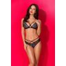 Эффектный комплект белья Bogna черного цвета выполнен из полупрозрачного тюля и синего кружева. В комплект входит бюст и трусики-стринги, дополненные стрепами. Бретели регулируются по длине. Комплект упакован в красивую плотную коробку.