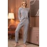 Комплект Mia-Amore с брючками выполнен из меланжевого трикотажного полотна. Лонгслив имеет на плечах вставки из эластичного кружева. Комплект дополняют удобные брючки на резинке, низ которых оформлен эластичными манжетами.