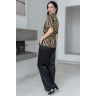 Комплект-тройка Mia-Mella состоит из жакета c короткими рукавами, топа и брюк. Топ и брюки выполнены из однотонного искусственного шелкового полотна с атласным блеском, а жакет – из принтованного. По талии жакет запахивается на пояс, в боковых швах брюк обработаны карманы.