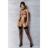 Эротический корсет Dominica - это комплект, который состоит из сексуального корсета и стринг. Модель выполнена из полупрозрачного материала дотс с открытыми чашками. . Бретели и подвязки регулируются по длине, на спинке корсетная завязка. Чулки в комплект не входят.
