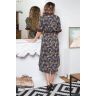 Халат домашний женский выполнен из принтованной вискозы. Модель на поясе свободного силуэта средней длины. Халат рубашечного типа с воротником стойкой и планкой застежкой на пуговицах. Рукав прямой длиной до локтя. В боковых швах изделия карманы.