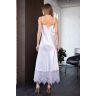 Длинное домашнее женское платье на регулируемых фигурных бретелях из однотонного сатина. По низу изделия тонкое кружево. Спинка так же декорирована кружевом.