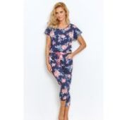 Длинный халат Mia-Amore с застежкой на пуговицы и с рукавом длиной 3/4, выполнен из принтованного атласа с контрастными кантами в виде отделки. По бокам обработаны накладные карманы. Линию талии можно подчеркнуть за счет пояса, который идет в комплекте.