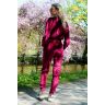 Костюм изготовлен из мягкого эластичного велюра. Материал очень приятный на ощупь. Толстовка застегивается на золотистую блестящую молнию. Рукава и низ толстовки отделаны резинкой. Стильные и супер удобные брюки с резинками. Есть карманы по бокам. Этот комплект для женщин, которые ценят повседневный комфорт и модный стиль.