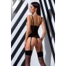 Полупрозрачный корсет Heidi черного цвета с подвязками для чулок. Лиф открытый на косточках, бретели и подвязки регулируются по длине, сзади застежка на крючки-петли. В комплект к корсету идут трусики-стринги. Чулки в комплект НЕ входят. Изделие упаковано в красивую плотную коробку.