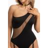 Чувственное боди на одно плечо Jenny. Боди соблазнительно подчеркивает изгибы женского тела и талию. Благодаря тюлевой сетчатой вставке от плеча до бедра удлиняет и стройнит ноги. Необычные подвязки добавляют оригинальности. Спинка непрозрачная. В комплект входят съемные подвязки и боди. Чокера в комплекте нет.