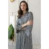 Длинный халат-кимоно Mia-Amore с широким рукавом длиной 3/4 . Халат выполнен из смесового шелка. В изделии используются два вида масштаба одного принта, граница которых разделена контрастным кантом. По бокам обработаны карманы.