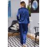 Классическая пижама Mia-Mia. Состоит из жакета и длинных брюк из натурального шелка. Жакет полуприлегающего покроя с застежкой на пуговицы и отложным воротником. Рукав втачной на манжете. Длинные брюки свободного покроя на эластичной тесьме (резинке) в поясе, с карманами в боковых швах.