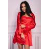 Атласный комплект Jacqueline состоит из пеньюара с длинными рукавами, сорочки на тонких регулируемых бретелях и трусиков-стринг. Верх сорочки, рукава и края полочек пеньюара украшены очаровательным кружевом с цветочным узором. Завершает образ съемный пояс из атласной ткани, подчеркивающий красоту фигуры. Комплект упакован в красивую плотную коробочку.
