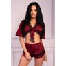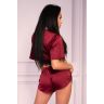 Комплект из приятной сатиновой ткани. В комплект входит топ с короткими рукавами и завязками спереди и шорты.