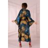 Халат Handis — это сочетание утонченной чувственности и стильной оригинальности. Халат, подвязанный на талии толстым поясом, был сшит из воздушной ткани, которая хорошо сидит на теле. Мягкий и приятный на ощупь материал в то же время очень воздушный, благодаря чему одежда хорошо смотрится в движении. Темно-синий материал был украшен оригинальным узором с изображением растительных мотивов. Удобные, широкие рукава не сковывают движений, что обеспечивает комфорт и свободу использования. Халат хорошо смотрится на любом типе фигуре, ведь он призван скрыть недостатки и обнажить достоинства фигуры.