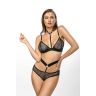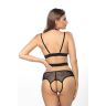 Смелый и чувственный комплект Layla из красивого, мягкого черного материала. На лифе и трусиках регулируемые бретели. В комплекте бюстгальтер и трусики с поясом. Чокер в комплект не входит.