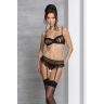 Черный эротический комплект нижнего белья Lovelia. Комплект состоит из лифа, пояса для чулок и контактных трусиков-стринг. На спинке лифа - удобная застежка. Комплект упакован в красивую плотную коробочку и отлично подойдет в качестве оригинального подарка. Чулки в комплект не входят.