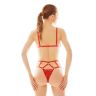 Соблазнительный комплект нижнего белья выполнен из кружева и эластичных стрэпов. Лиф мягкий без косточек. Бретели регулируются по длине, на спинке удобная застежка. Трусики-стринги с завышенной посадкой. Комплект упакован в красивую плотную коробочку. В комплекте бюстгальтер и трусики.