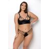 Комплект нижнего белья Malwia состоит из двух предметов: бюст и трусики стринги. Выполнен в эффектном сочетании гладкого черного материала и золотых колец. Декоративные кольца и стрепы придают модели пикантной изюминки. Бюст мягкий, бретели сзади регулируются по длине, на спине застежка на крючки-петли. Трусики стринги низкой сексуальной посадки. Комплект упакован в красивую плотную коробку.