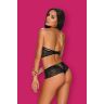 Пикантный комплект нижнего белья Nettsy выполнен из эластичного кружева с цветочным узором. Бюст с открытыми чашками на косточках. Бретель фиксируется за шеей. Трусики с доступом, декорированы вставкой, имитирующей корсетную шнуровку сзади. Изделие упаковано в красивую плотную коробочку.