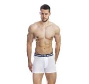 Комфортные трусики-бразилиана белого цвета выполнены из хлопкового полотна. Широкая мягкая резинка украшена фирменным логотипом.