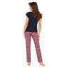 Пижама Rita состоит из темно-синей футболки и прямых брюк с принтом. Футболка с V-образным вырезом, который декорирован кружевом в цвет. Изделие выполнено из мягкой гладкой вискозы и упаковано в красивую плотную коробку.
