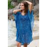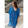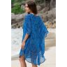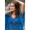 Короткая туника Mia-Amore с рукавом летучая мышь выполнена из принтованного шифона в морской синей гамме, низ туники имеет овальную форму, горловина оформлена бисером и паетками.