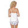 Пижама Rosa состоит из топа и шорт. Топ однотонный на бретелях. Шорты с цветочным принтом и с атласным бантиком в цвет пижамы. Изделие выполнено из мягкого гладкого сатина и упаковано в красивую плотную коробку.
