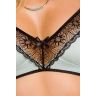 Атласный комплект нижнего белья Sidra нежного пастельного мятного цвета с насыщенным черным кружевом. Чашки мягкие, без косточек, на спине застежка. Комплект упакован в красивую плотную коробку.