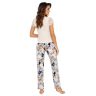 Пижама Sofia из вискозы. Однотонная, слегка приталенная футболка с кружевными рукавами. Брюки прямого кроя с нежным цветочным принтом.