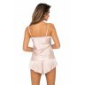 Сатиновая пижама Tiffani состоит из однотонных топа и шортиков. Топ на тонких регулируемых бретелях, V-образный вырез горловины и спинка декорированы очаровательным кружевом. Шорты на мягкой резинке, с бантиком. Изделие упаковано в красивую плотную коробку.