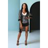Короткий халат прямого силуэта из натурального 100% шёлка с фантазийным принтом "турецкий огурец" на поясе. Халат с втачными рукавами на манжете. Модель по борту на обтачке, по талии завязывается на внутреннюю завязку.