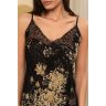 Сорочка Mia-Amore средней длины на тонких регулируемых бретелях выполнена из вискозно-шёлкового полотна деворе. По лифу и сбоку сорочка украшена чёрным ажурным кружевом. Сбоку сорочки разрез. По центру лифа декоративный бантик.