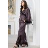 Комплект с брюками и жакетом Mia-Amore выполнен из смесового шёлка. Брюки с боковыми разрезами отделаны по низу кружевом. Жакет запашной с завязкой в виде широкого пояса. Вырез горловины спереди также декорирован кружевом.